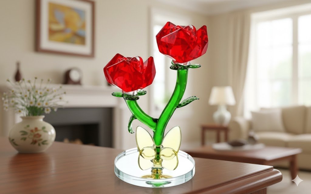 Lustrous Red Blooms: The two meticulously crafted rose heads feature a deep, glossy red finish, radiating warmth and passion.