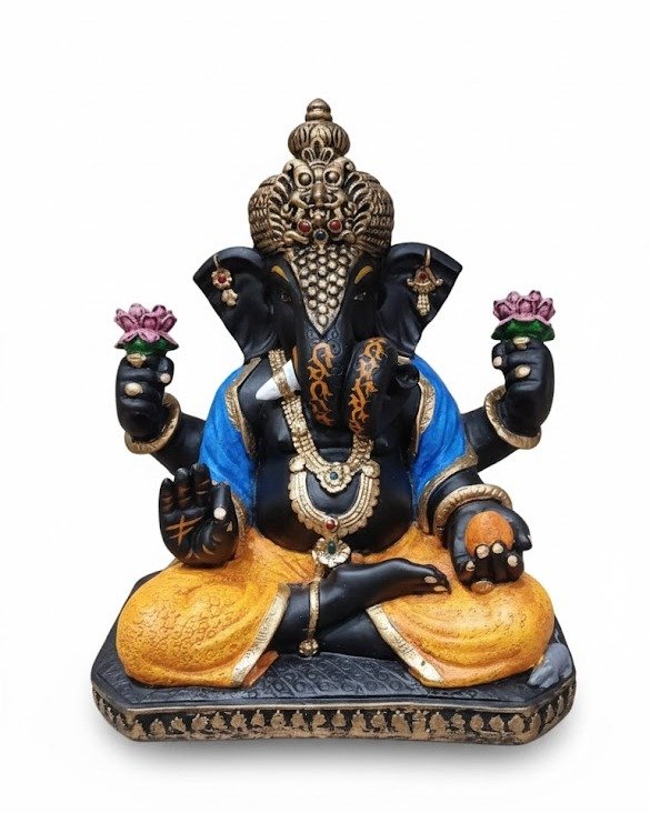 Divine Black & Gold Ganesha Idol – Royal Blue & Saffron Edition