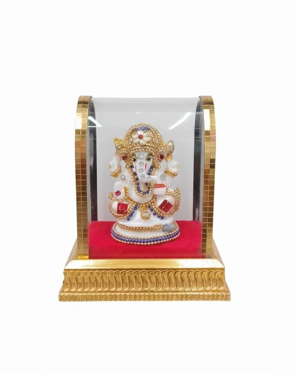 Divine Blessings Ganesha Idol in Arched Glass Case