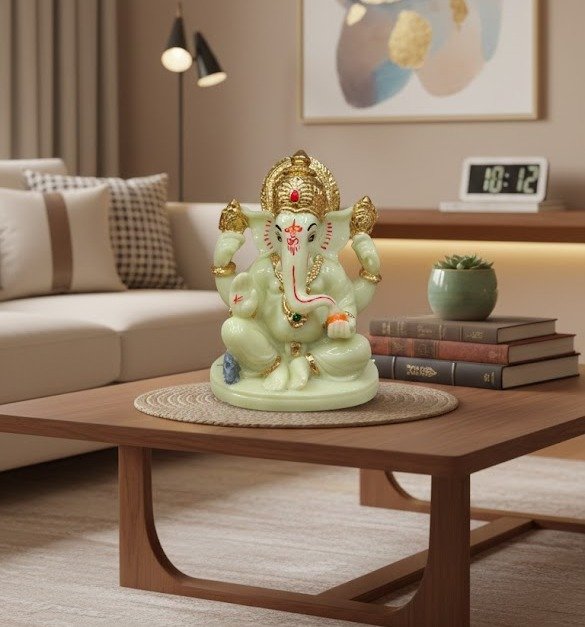 Divine Ganesha Idol – Hand-Painted Resin with Gold Accents