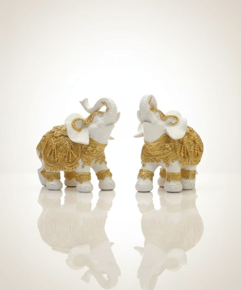 Elegant White & Gold Trunk-Up Elephant Set