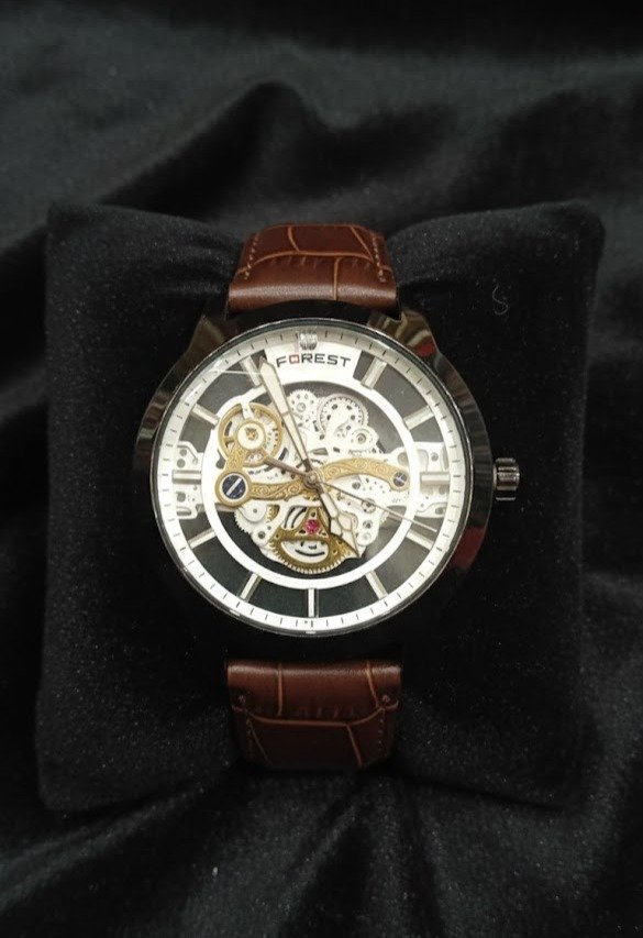 Forest Skeleton Mechanical Watch – Classic Brown Leather