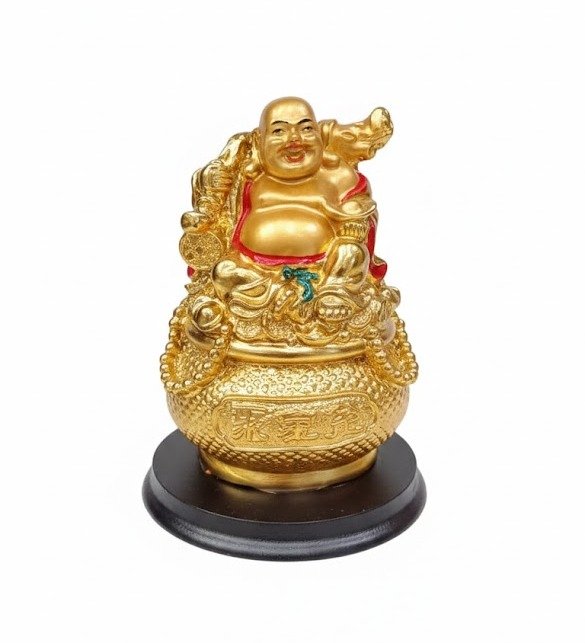 Golden Laughing Buddha on Treasure Bag