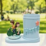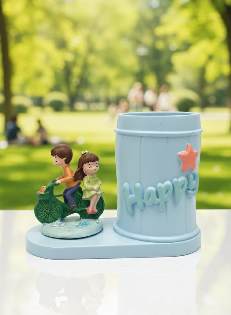 Detailed Artistry: Features a 3D figurine of a boy and girl on a green bicycle, set on a sturdy, matching base.