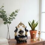 Intricate Craftsmanship: Features detailed carvings on the elephant bases and Ganesha’s crown and attire.