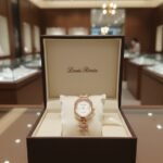 Minimalist Dial: A clean, white mother-of-pearl style dial with delicate rose gold markers and the signature Louis Renee branding.