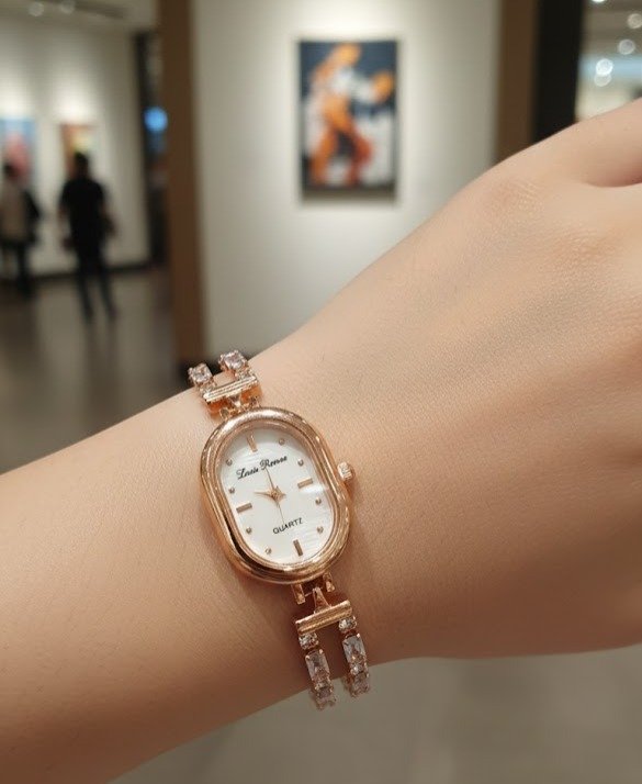 Elegant Design: Features a classic oval-shaped face with a polished rose gold-tone casing that radiates warmth and luxury.