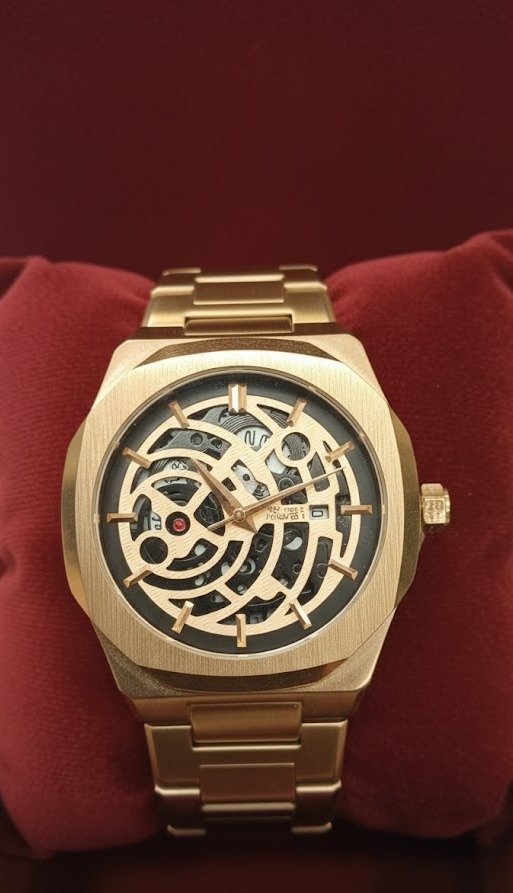 Luxe Skeleton Concept Watch – Rose Gold & Matte Black
