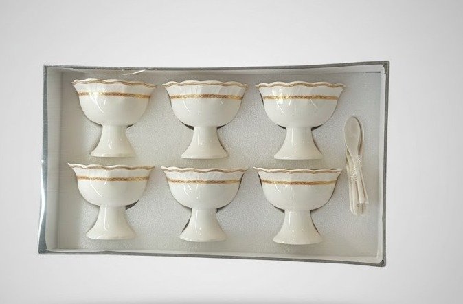 Regal Gold-Rimmed Dessert Bowl Set (6-Piece)