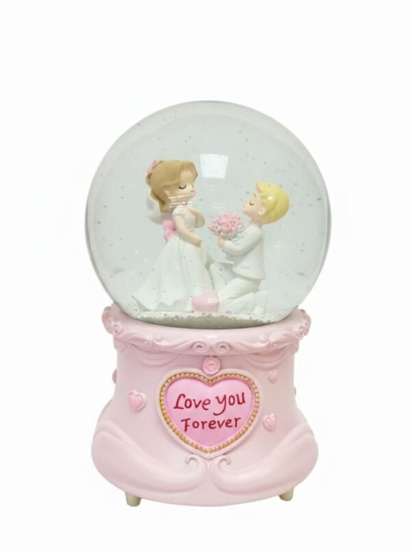 Intricate Design: Features a hand-painted bride and groom figurine inside a clear glass globe filled with shimmering glitter.