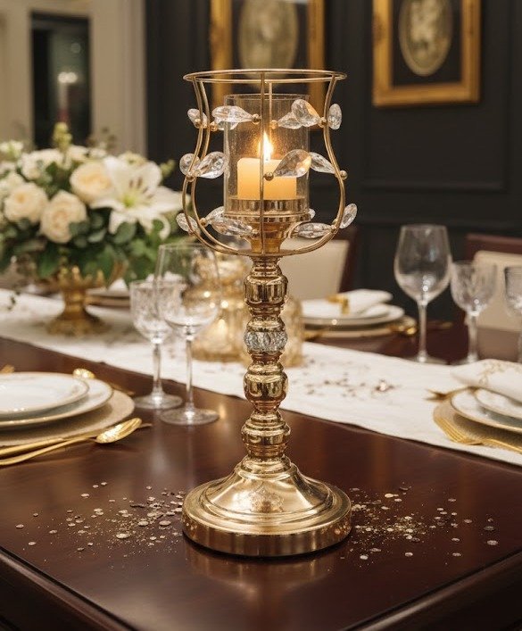 Royal Gold Crystal-Embellished Pillar Candle Holder / Centerpiece