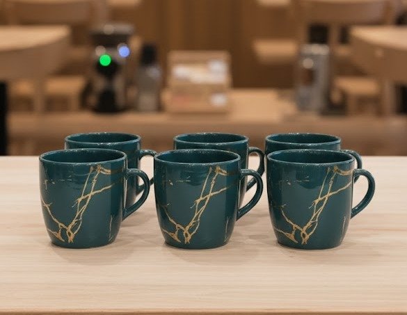 Stunning Design: Har mug par gold marble vein pattern hai jo kintsugi art se inspired lagta hai.