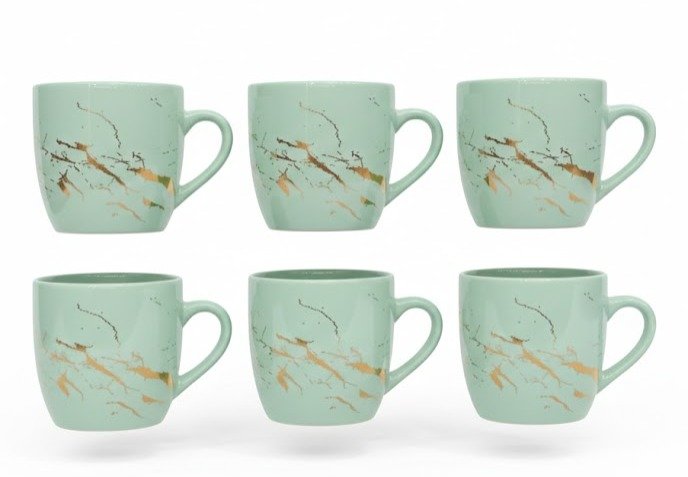 Royal Gold-Vein Marble Coffee Mug Set (Pack of 6)