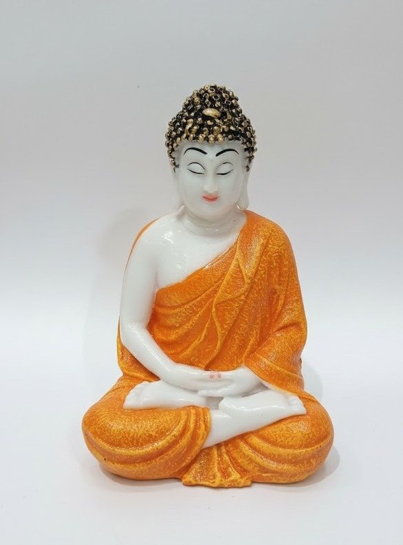 Artisanship: Detailed with a unique “crackle” texture on the robes and finished with a striking gold-leaf effect on the ushnisha (head).