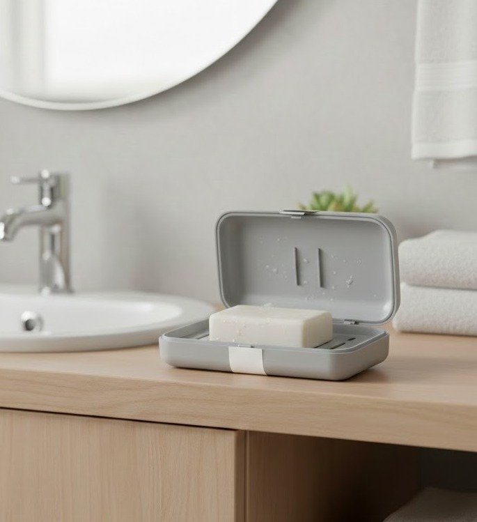 Secure and Hygienic: The solid lid keeps the soap protected from dust, water splashes, and humidity, ensuring a cleaner, more hygienic bar of soap.