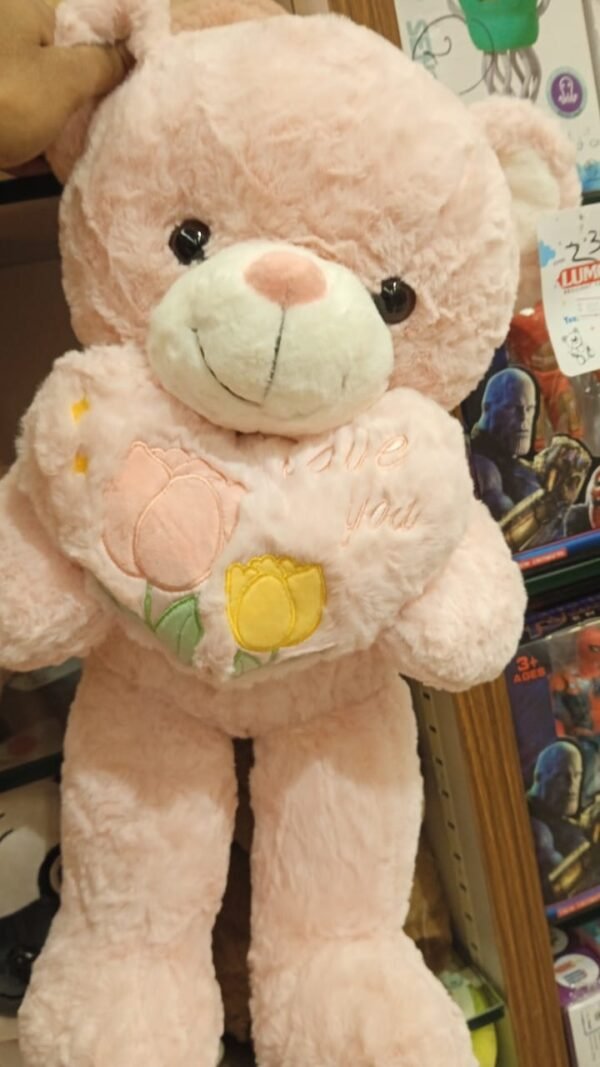 Heartfelt Design: Minnie holds a plush heart featuring beautiful embroidered tulips and a delicate “Love You” script.