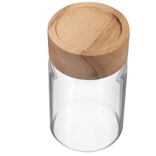 Natural Wood Lid: Features a beautifully grained wooden lid that provides a tight seal to preserve the freshness of spices, grains, or snacks.